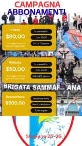 Abbonamento Sostenitore: euro 500,00 (special Card prevista per chi vorrà affiancare il Club con una sottoscrizione che darà accesso a tutti gli eventi organizzati nel corso della stagione)